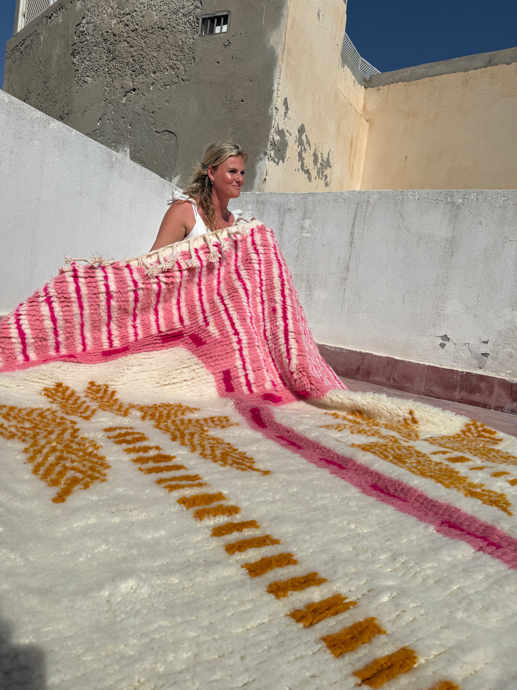 Al onze kleden worden op bestelling in Marokko met de hand gemaakt, gewassen en in de zon gedroogd. Daarna wordt het kleed naar onze hub in Nederland verstuurd waarna we een laatste kwaliteitscheck doen en het kleed naar jou versturen! Verzending is gratis voor bestellingen van meer dan €99,-