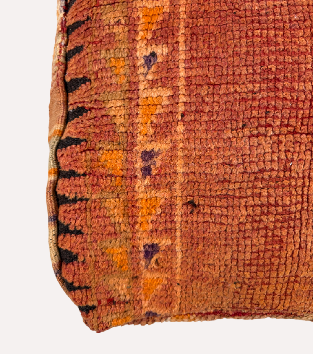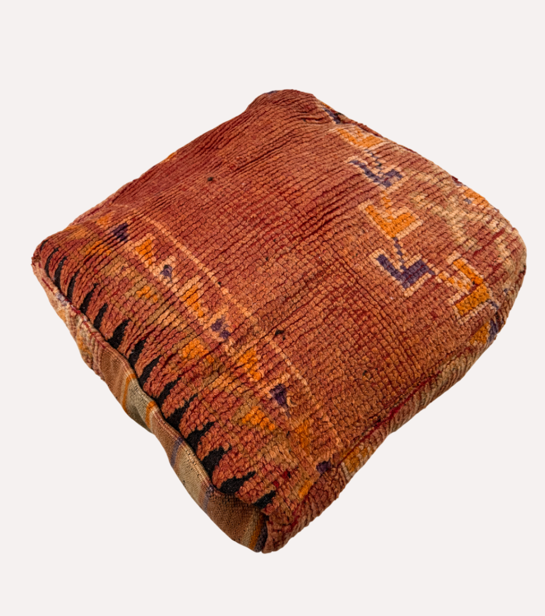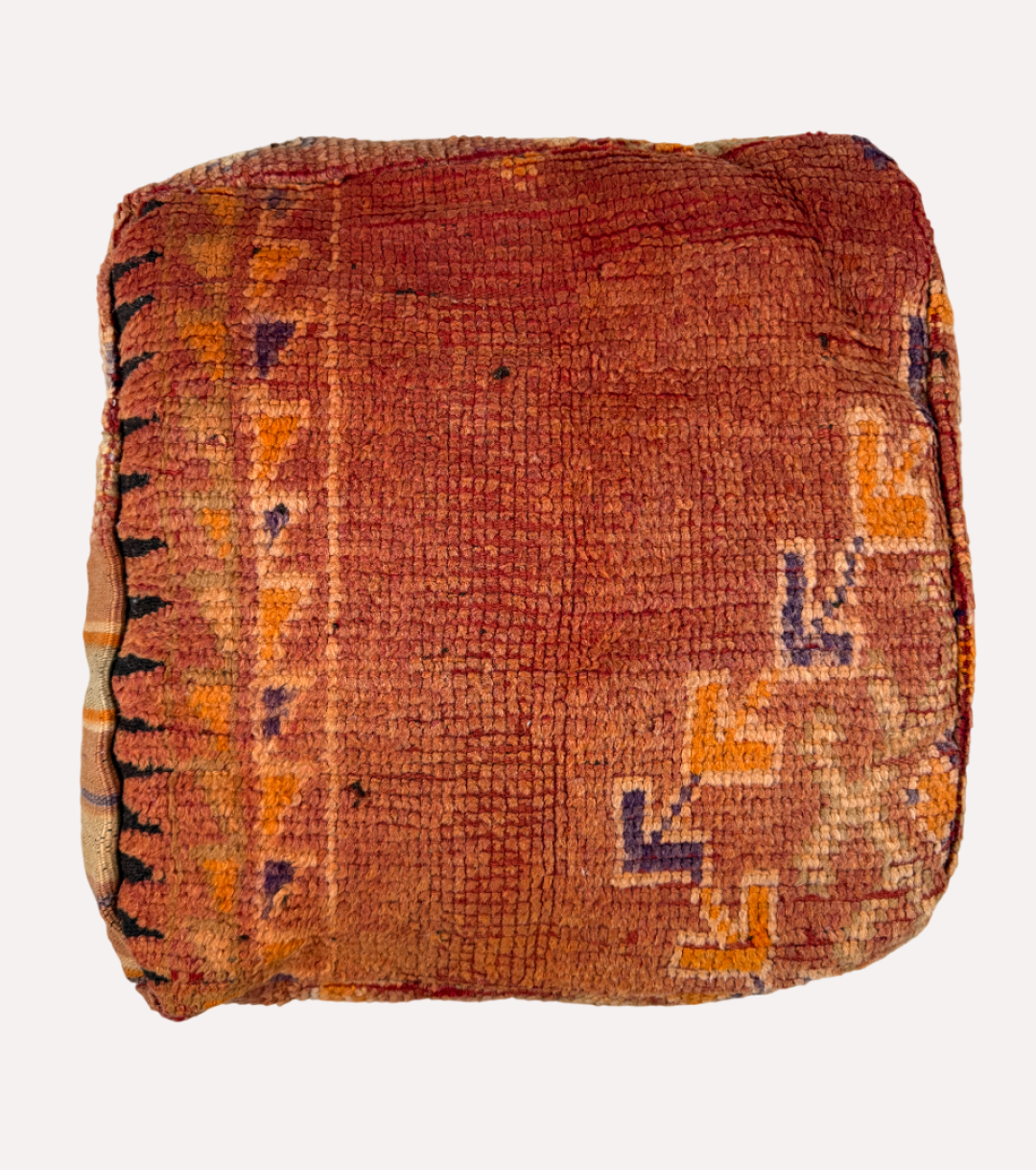 Marokkaanse poefs worden gemaakt van vintage Berberkleden zoals Beni Ouarain of Boujaad. Wanneer delen van zo’n kleed té beschadigd zijn om te repareren, worden de mooie stukken hergebruikt en met de hand omgevormd tot een unieke poef. Zo krijgt het kleed een tweede leven en kunnen ze jouw interieur blijven opfleuren.