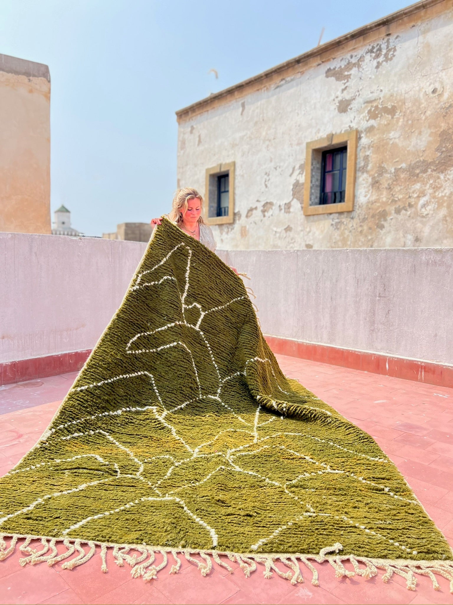 Al onze kleden worden op bestelling in Marokko met de hand gemaakt, gewassen en in de zon gedroogd. Daarna wordt het kleed naar onze hub in Nederland verstuurd waarna we een laatste kwaliteitscheck doen en het kleed naar jou versturen! Verzending is gratis voor bestellingen van meer dan €99,-