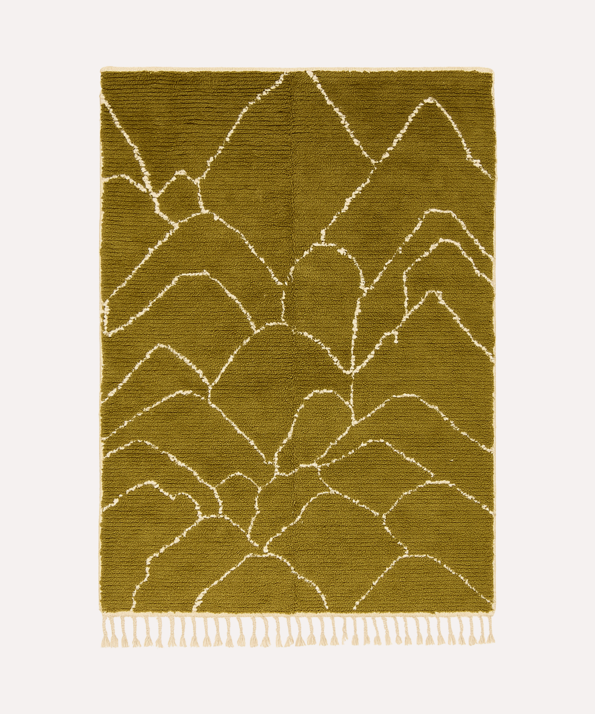 Zara is een uitgesproken vloerkleed in diepe olijfgroene tinten met een abstract lijnenspel in off white. Het moderne patroon is met de hand geweven in een luxueuze, hoge pool en straalt rust en karakter uit.
